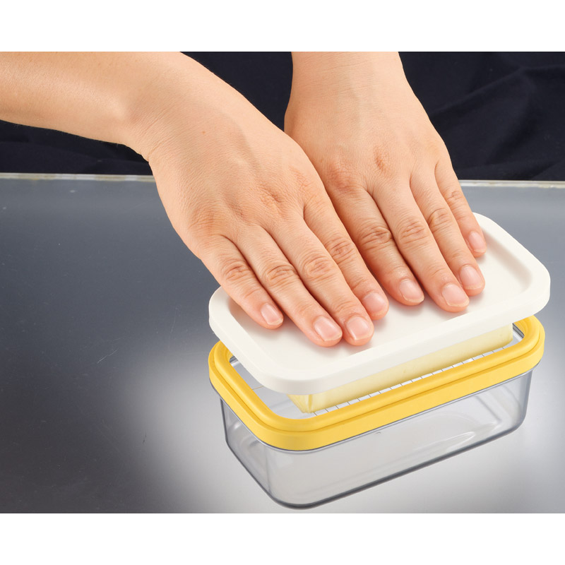 ログインギュッとひと押し。バターを約5gのうす切りにカットできます。カットしたらそのまま冷蔵庫に保存できます。