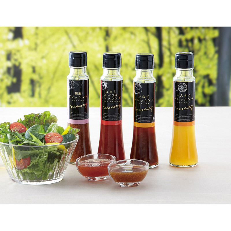 野菜がたっぷり食べられる、見た目鮮やか味いろいろ、美味しいドレッシングの詰合せ。