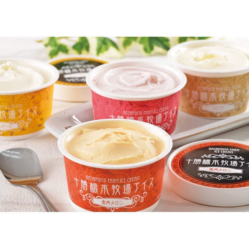 ログイン放牧牛に認定された十勝橋本牧場の生乳を使用したアイスクリーム。