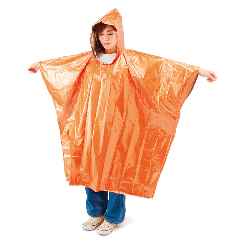 カサカサ音が少ないタイプ。ポンチョ型なので手が自由に使えて大変便利です。災害時や非常時にも、緊急用品として活用いただけます。