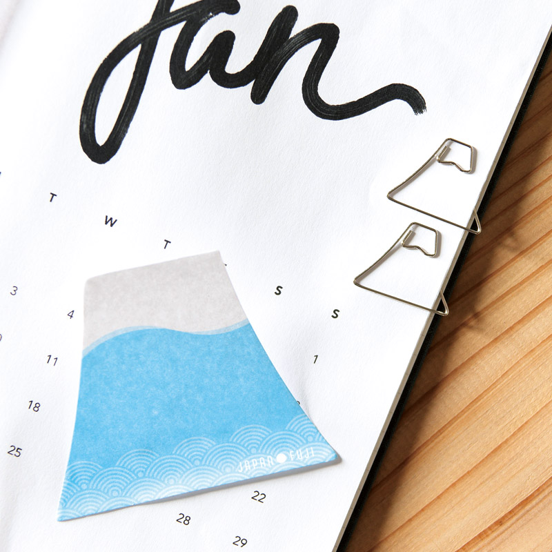 富士山をかたどった付箋とクリップのセット。訪日観光客向けやお正月などのおめでたいシーズンに。