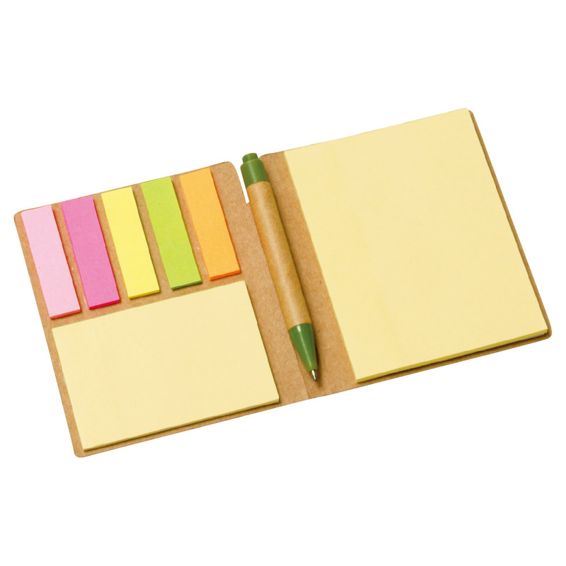ログインコンパクトなポケットサイズのペン&付箋セットです。再生クラフト紙を使用。