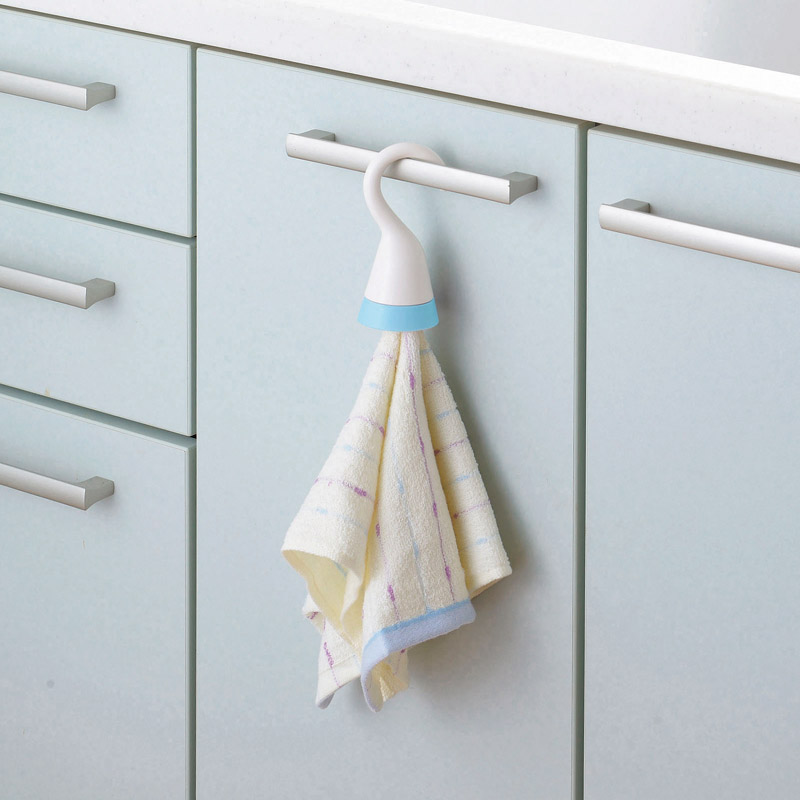 どこでもかけられるフック式で着脱が簡単な押し込み式のタオルホルダーです。