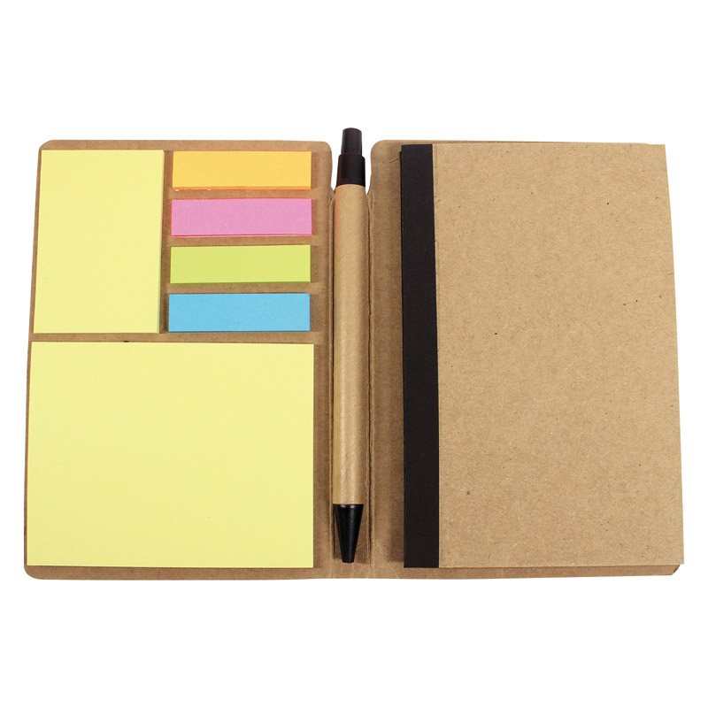 付箋と筆記具を備えた実用性の高い上質なノートブック。
