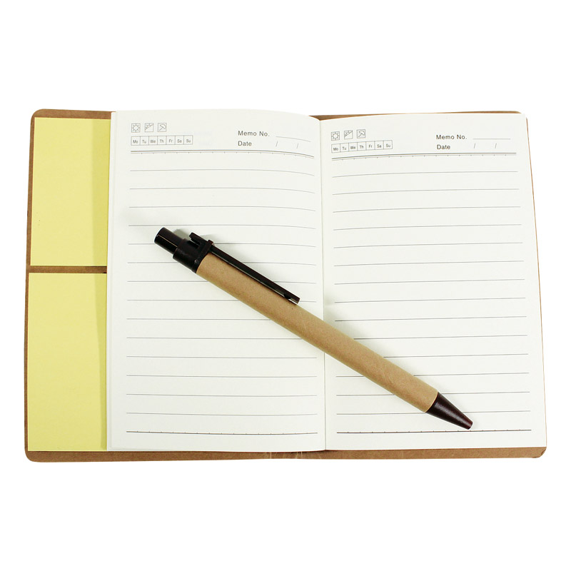 付箋と筆記具を備えた実用性の高い上質なノートブック。