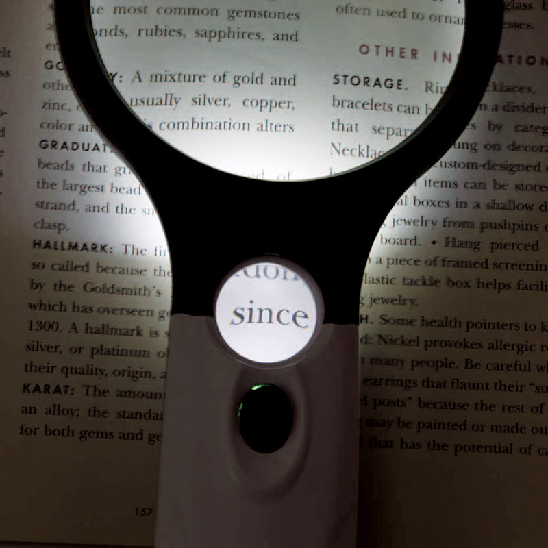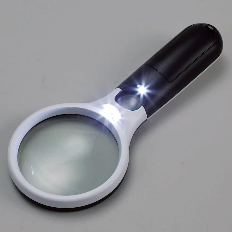 ログイン5倍と10倍の2つのレンズとLEDで明るく大きく文字を見る事ができます。