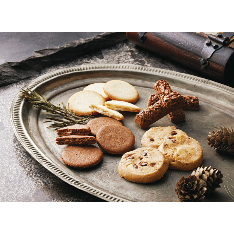ナッツとチョコのざっくりクッキー、なめらかな口当たりの生地に2種類のチョコクリームをサンドしたラングドシャ。コーヒー、紅茶によく合う焼き菓子を詰合せました。