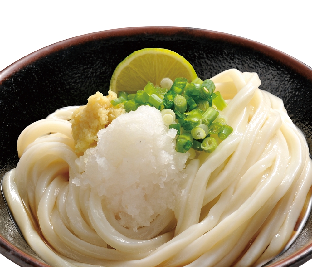 麺は生地を折りたたむ手打ちの技法を応用し、包丁切りで仕上げました。もっちりとした歯応えと旨みが自慢です。つゆは地元香川の名産地として名高い伊吹漁協産の「伊吹のいりこのだし」をベースに、すっきりとした味わいの「かけうどん」、鰹だしとのバランスの「釜揚げうどん」、コクとまろやかな味わいの「ぶっかけうどん」、和風ベースにピリッとスパイスの効いた「カレーうどん」、うどん県讃岐うどんならではの人気メニューの競演が楽しめます。