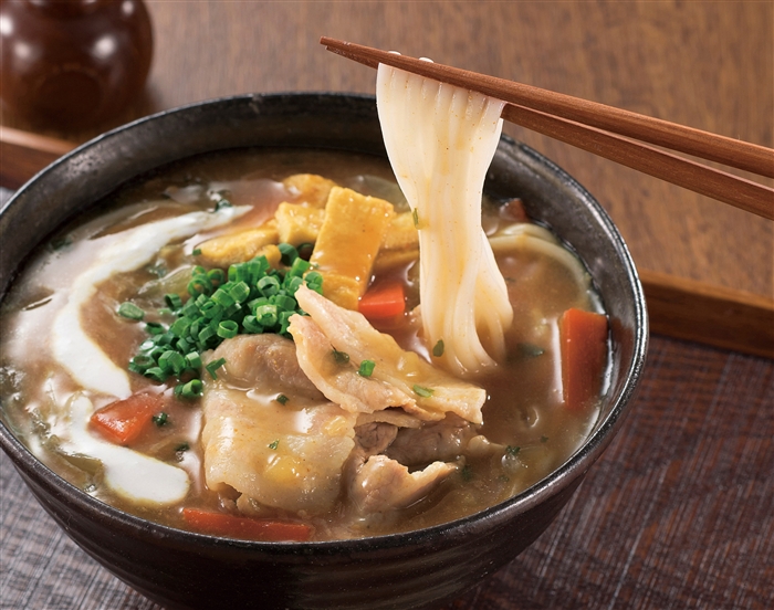 珍しいクリーミータイプのカレーうどんセットはまろやかな味わいです。ちょうど良い容量で、冬は温まり、夏は活力を与える食品として一年中使えます。現地に赴き、作り手のこだわりに向き合う「古今無双」、他では扱えない「不同不二」、価格・味・品質の全てに比類なき一品である「不離一体」が「至福の逸品」の心得です。