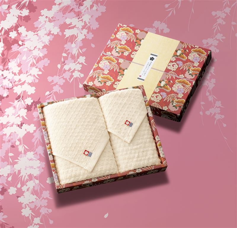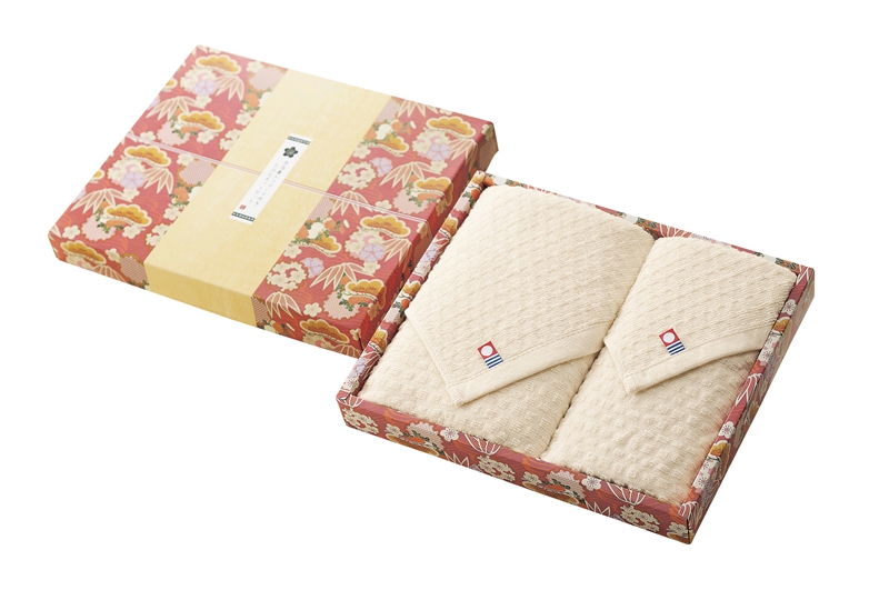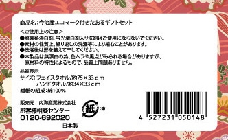 今治で厳選された織物職人たちが手がけるエコマーク付きタオルは、無漂白で地球環境に優しい選択。安心の日本製品は高品質で、使い勝手も抜群です。日本らしい柄が施されたパッケージは、ご成約特典やギフトにも最適です。