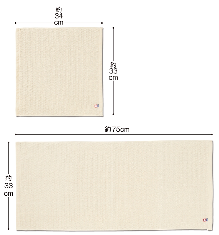 | サイズ | ハンドタオル/約34×33cm フェイスタオル/約75×33cm |
