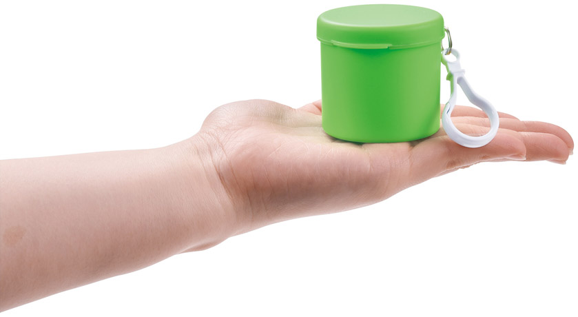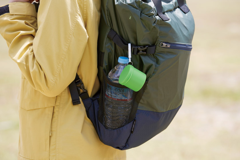 フック付きでカバンに付けられ、携帯に便利。