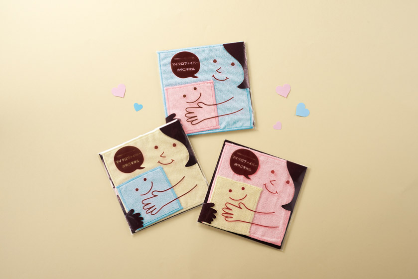 使い分けに便利な大小2枚のタオルセット。 ハンカチにもお掃除クロスとしても使えます。 親子をモチーフにしたパッケージがポイント。