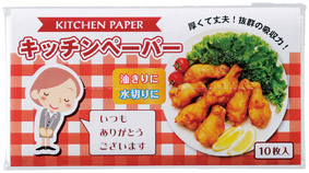 キッチンペーパー10枚のパッケージに 感謝の気持ちをデザインした低価格な商品です。