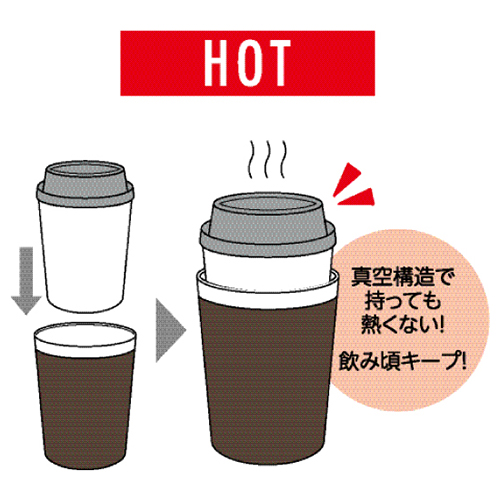 コンビニカップをそのまま入れて、保冷・保温効果持続!結露問題も解決します。もちろん直接飲み物を入れても使える2way仕様