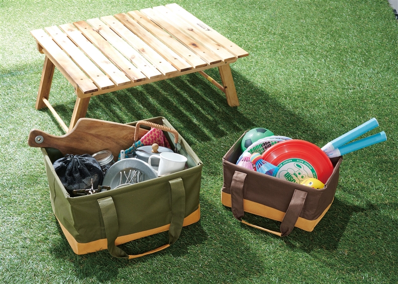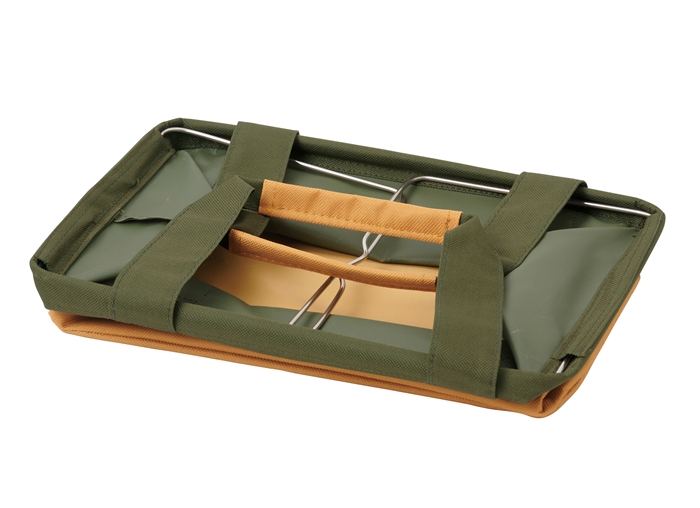 使用しない時は折り畳めてスペースを取らず、使用時には自立するフレーム付きの収納バッグ。 使用時はワイヤーフレーム入りでしっかり形をキープするのでガンガン放り込める!室内の収納にも使用できますし、ハンドル付きなのでアウトドアのキャリングケースとしてもご使用いただけます。耐荷重約5kg