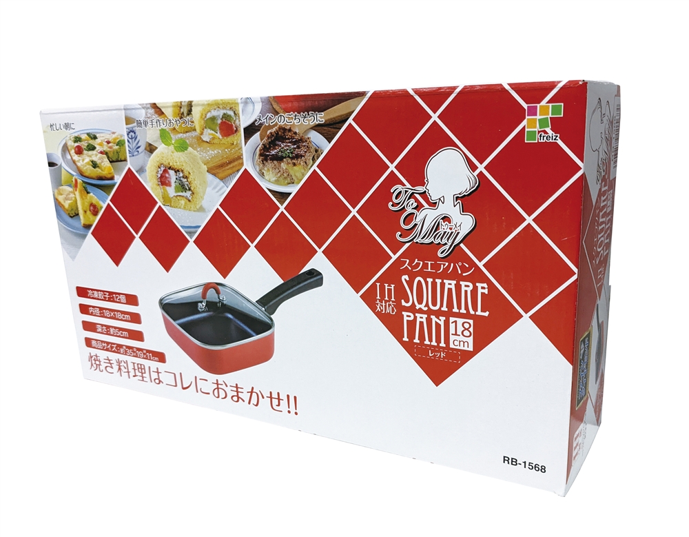 丸形のフライパンと比べて本体の平らな面積が広いので、一度に少し多めの食材が調理できるスクエアパン。 キッシュやロールケーキなど、四角いカタチを活用した調理も得意です。