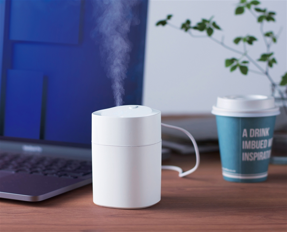 デスクやサイドテーブルなどへ置くのに便利な「USB対応卓上加湿器」。オフィスでのご使用に最適サイズ。