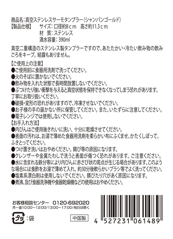 真空ステンレスサーモタンブラー390ml1個(シャンパンゴールド)