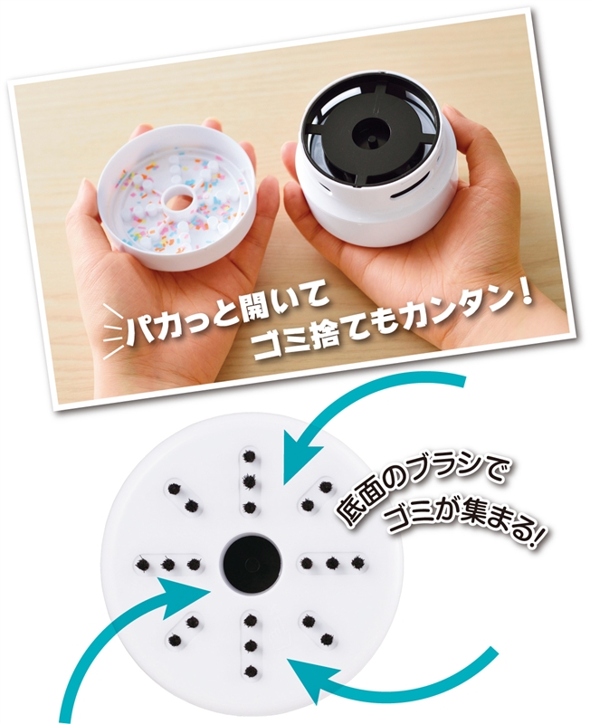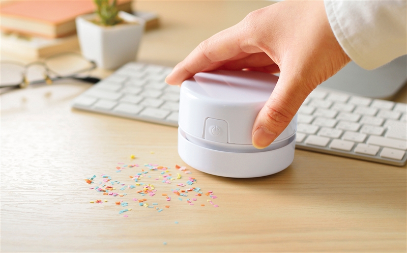 手のひらサイズの電動クリーナー。デスク周りのお掃除に最適!