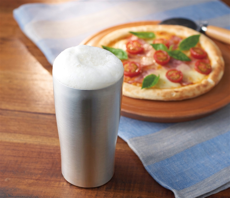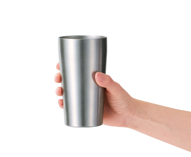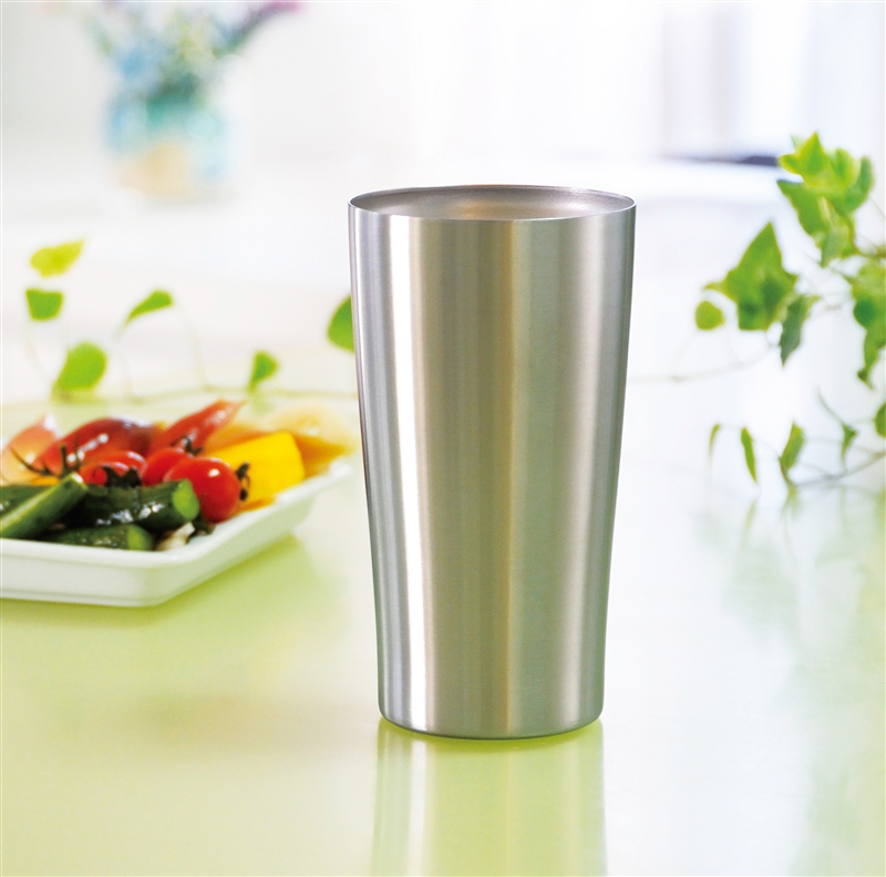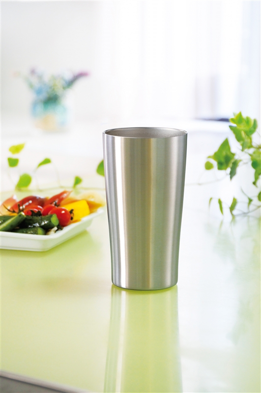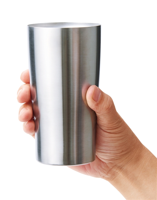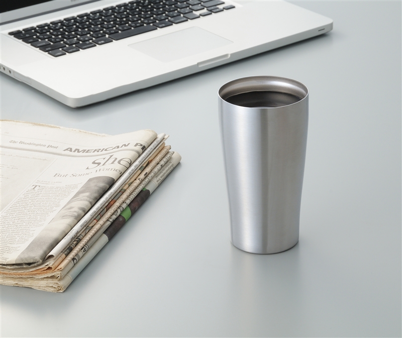 内瓶の飲み物の温度が外瓶まで伝わらず、氷を入れても結露せず、コースター不要。熱い飲み物を入れても本体が熱くなりにくく、持ちやすいタンブラーです。シンプルでスタイリッシュなデザインは名入れが映え、高級感もあり、企業の周年・設立記念品としてもおすすめです。