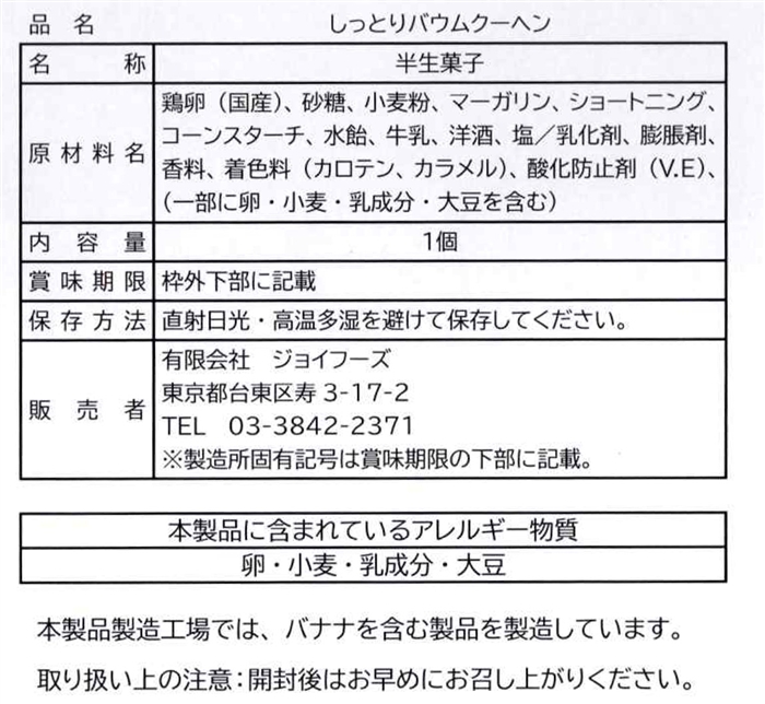 | 備考 | <セット内容> バウムクーヘン約230g×1 |