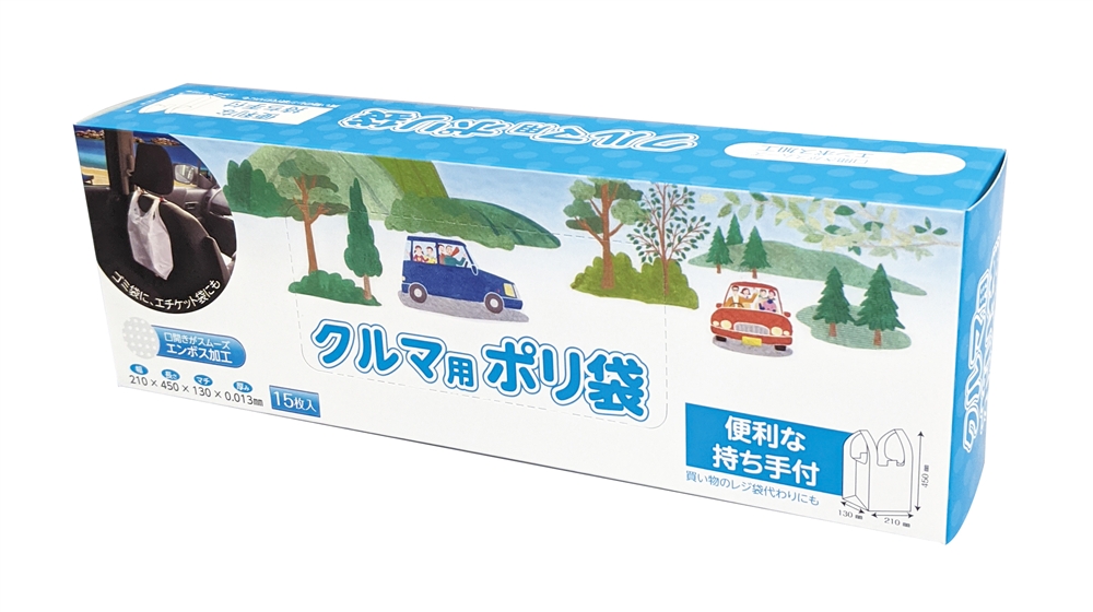 車内用ごみ袋やエチケット袋として便利♪持ち手付なのでちょっとした買い物袋としてもお使いいただけます。