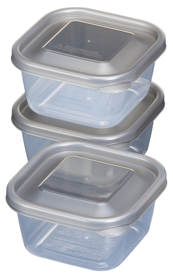 国産の安心できる原料(PL証明書・MSDS)を使用し、福井県の工場で商品化(製造セットアップ)を行った商品です。公的機関で耐熱耐冷試験(140度、-40度)も行っております。形状は正角の300mlと手頃なサイズ、お得な3個セット。重ねて収納可能。※密閉容器ではありません。クリア/ブラウン/ブルーの3色展開。