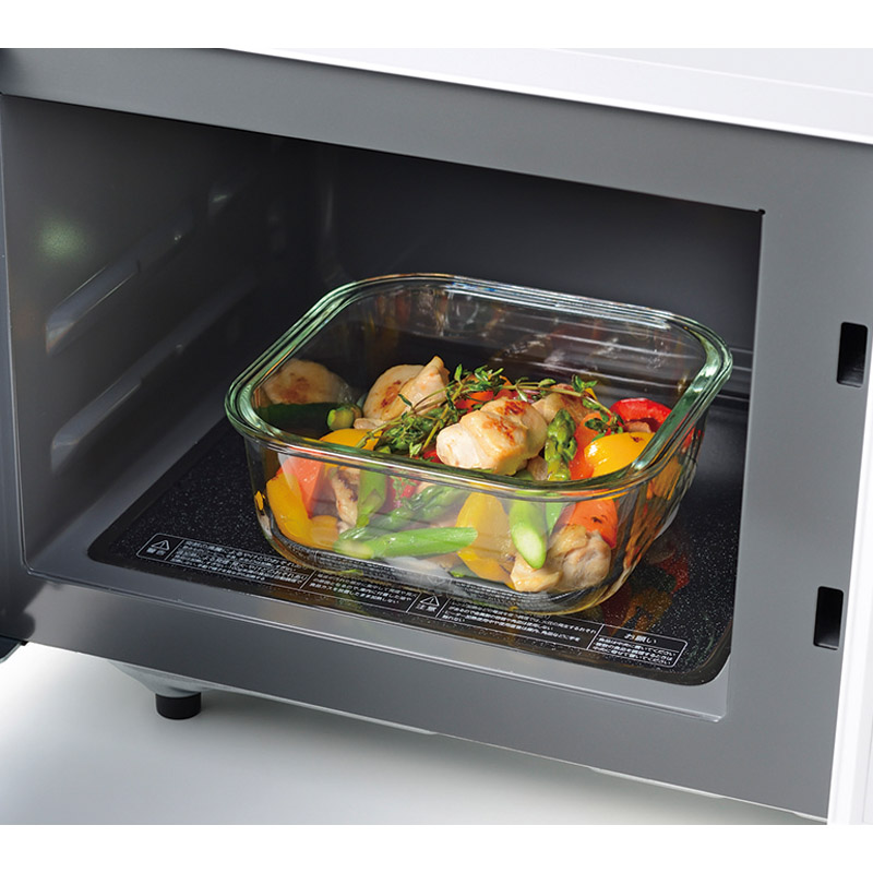 本体は耐熱温度差120度の耐熱ガラスなので電子レンジはもちろん、オーブン調理も可能。ニオイもつきにくいです。蓋はシリコーンパッキン&4点ロックでしっかり保存することができます。ガラスで透明なので冷蔵庫の中を見たときに一目で中身を確認できます。食洗機OK。