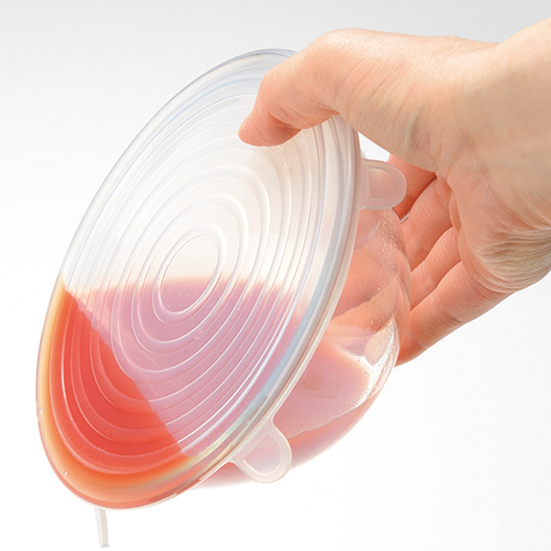 伸びてピタッと保存できる抗菌剤入りのラップです。ピッタリ容器にフィットするので汁物が漏れにくいです。着脱しやすいつまみも付いています。洗って繰り返し使えるので環境にも優しい商品です。