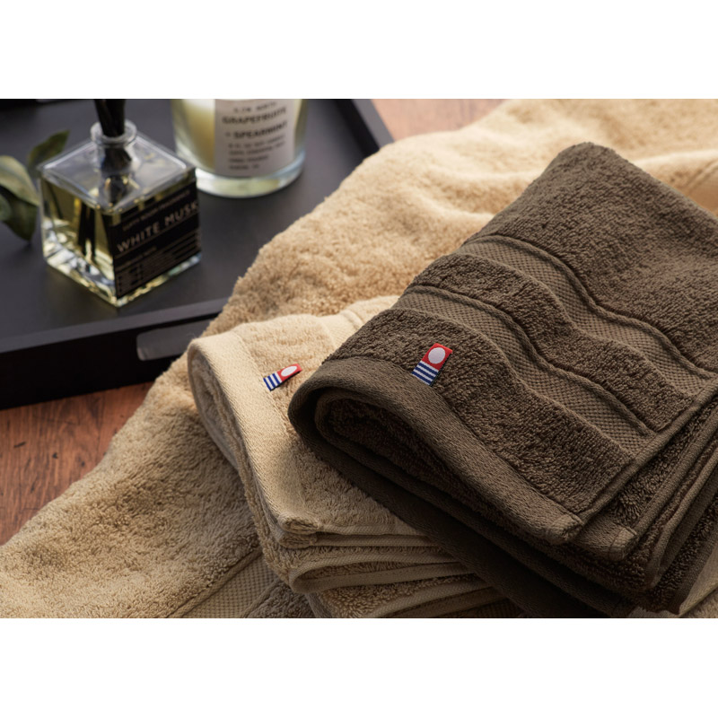 厚みたっぷりでボリューム感のあるホテル仕様で肌触りはとてもやわらかいのに丈夫な質感。環境負荷を少しでも減らすサステナブルな取組みとして、タオルを織る電力は太陽光発電でまかなっています。