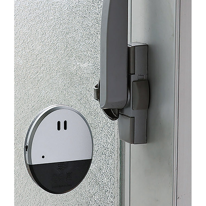 ログイン窓に貼り付けて簡単設置。振動を感知すると大音量でブザーが鳴ります。