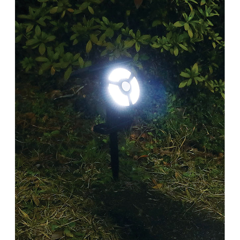 人を感知してライトがつくソーラー充電式防犯ライト。壁にも取り付け可能。●電源:光電池●防水性能/IPX54相当