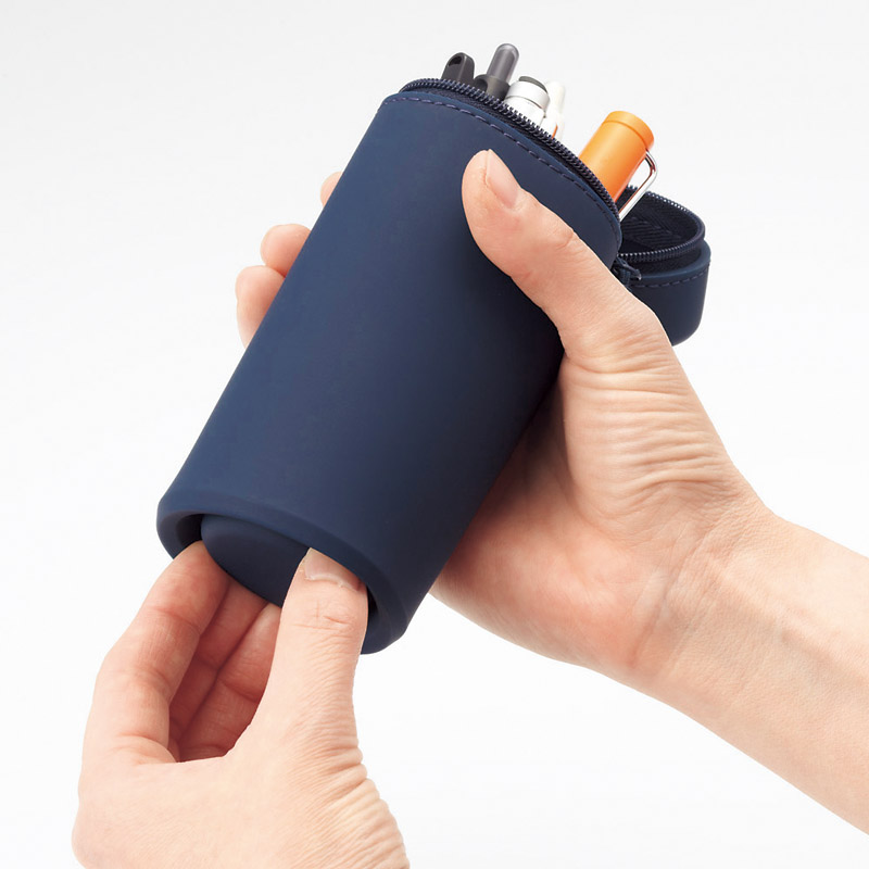 上から押すだけでペンスタンドに早変わり。2016年に第25回文具大賞(ISOT)にも選ばれたペンケースです。