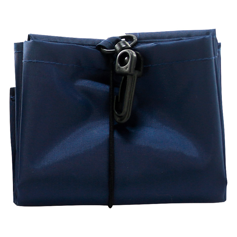 リサイクルPET素材仕様のエコバッグ。コンビニやスーパーのお弁当が入れやすいマチ広タイプ。コンパクトにまとめられるゴムと持ち運びに便利なフック付。