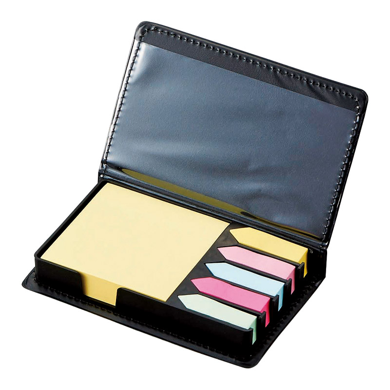 デスク周りの必需品。高級感の有る白のレザー調ケースに入ったボリューム満点の付箋セットです。