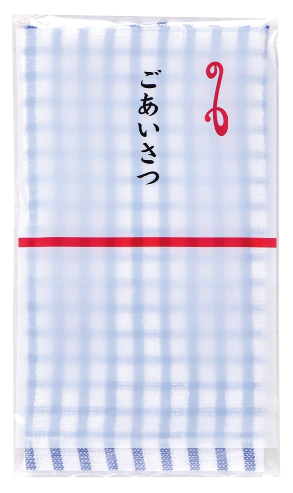 ポケット付の袋入りなので、ご挨拶や販促にもご利用いただけます。御挨拶の定番品の格子のワッフル調フキンです。