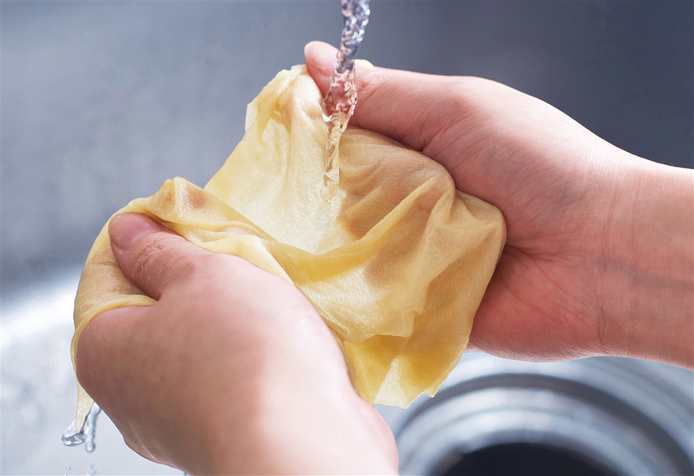 竹の繊維でできた素朴な手触りと、濡らしても破れない丈夫さを持った繰り返し使えるエコなクロスです。