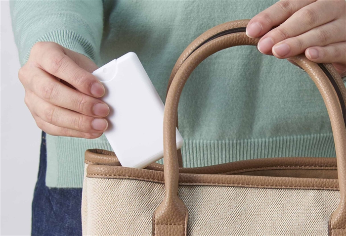 アルコール75%配合。ワイシャツの胸ポケットやズボンのポケットにも入れやすいフラットタイプなのでビジネスパーソン向けにおすすめです。この他にブラックもございます。