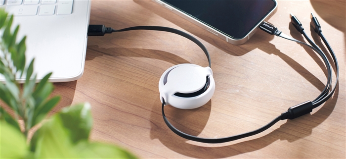 これ一つで様々な機器に対応。PC周りやカバンの中もスッキリ!白地のボディに名入れも可能。