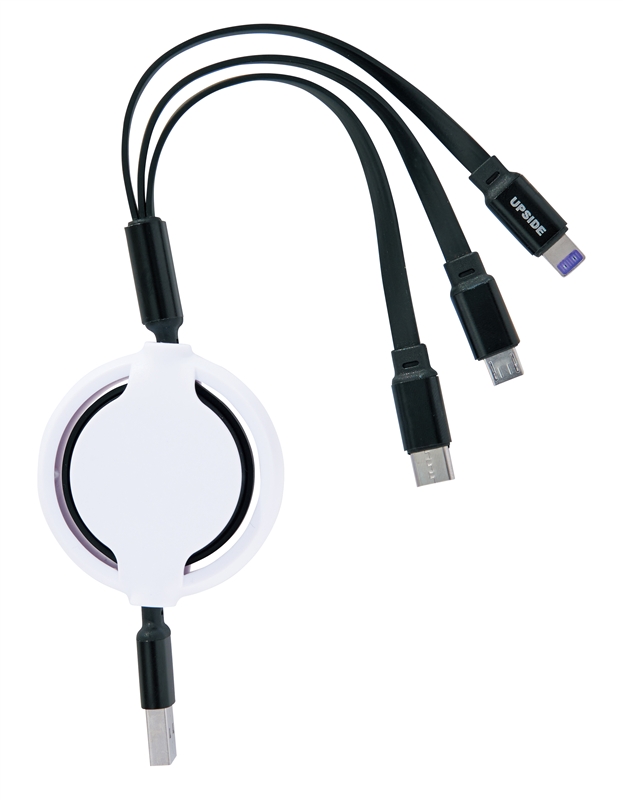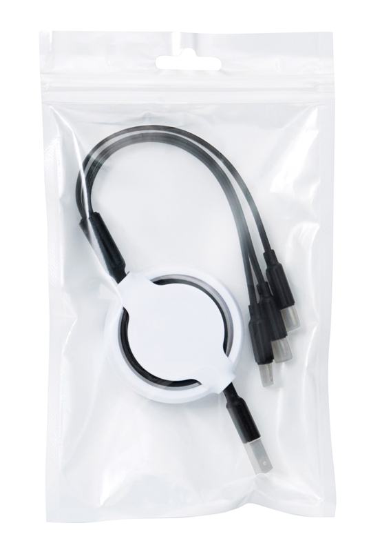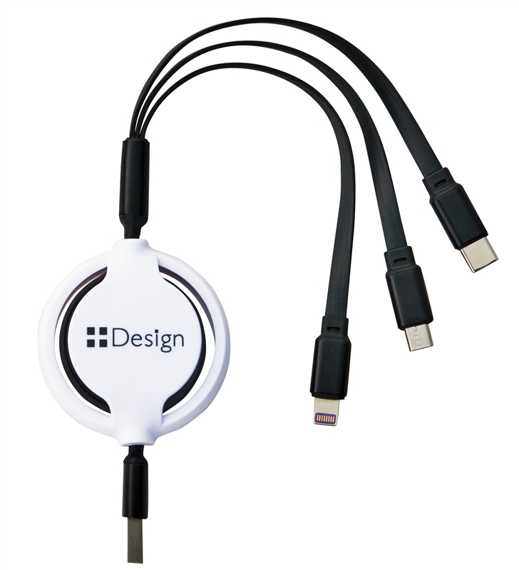 透明ジッパーバッグ入りなので名入れアピールもバッチリです。給電コードは約110cmまで引き出せます。給電コードが伸ばせて充電もラクラク。3type充電ケーブルはTypeC、micro USB、Lightningのコネクタがワンセットになっている頼もしいアイテム。
