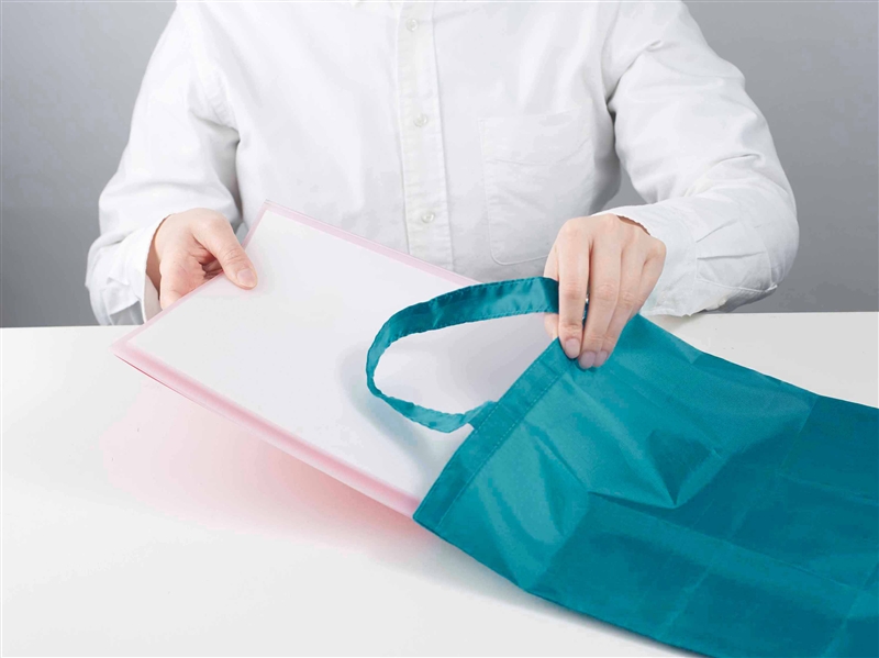 A4バッグは、軽量かつコンパクトで、使わない時はゴムバンドでまとめられ、携帯に便利です。展示会用バッグ、オープンキャンパスや会社説明会の参加記念品などにご活用ください。 Ecolorシリーズは環境(“E”nvironment)に配慮する社会で活躍するエコバッグです。