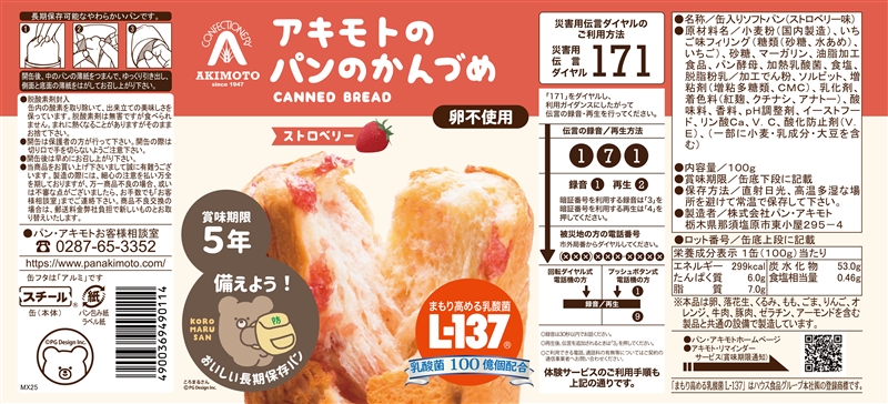 5年経っても焼きたてのおいしさ!!「アキモトのパンのかんづめ」に乳酸菌入りが登場しました。