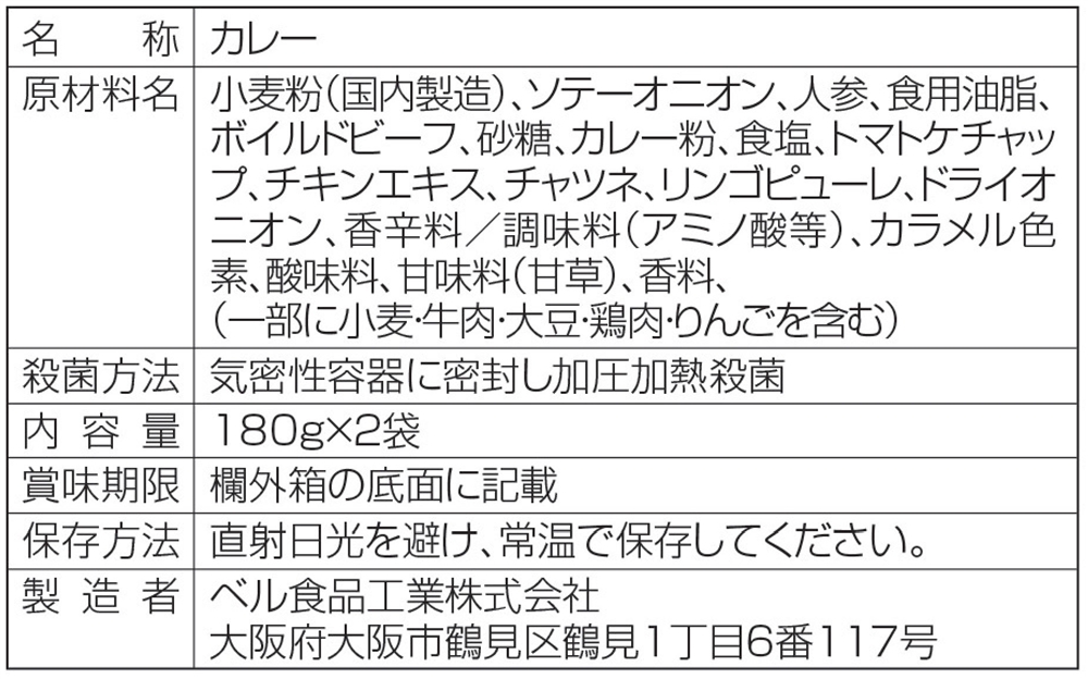 | 備考 | <セット内容> カレー180g×2食 |
