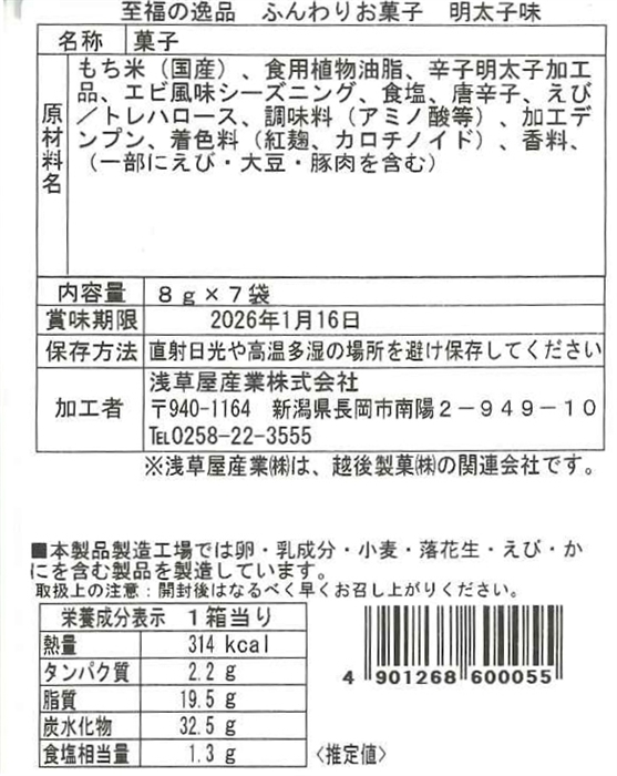 至福の逸品 ふんわりお菓子 めんたいこ味7袋