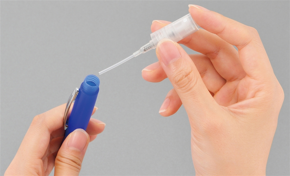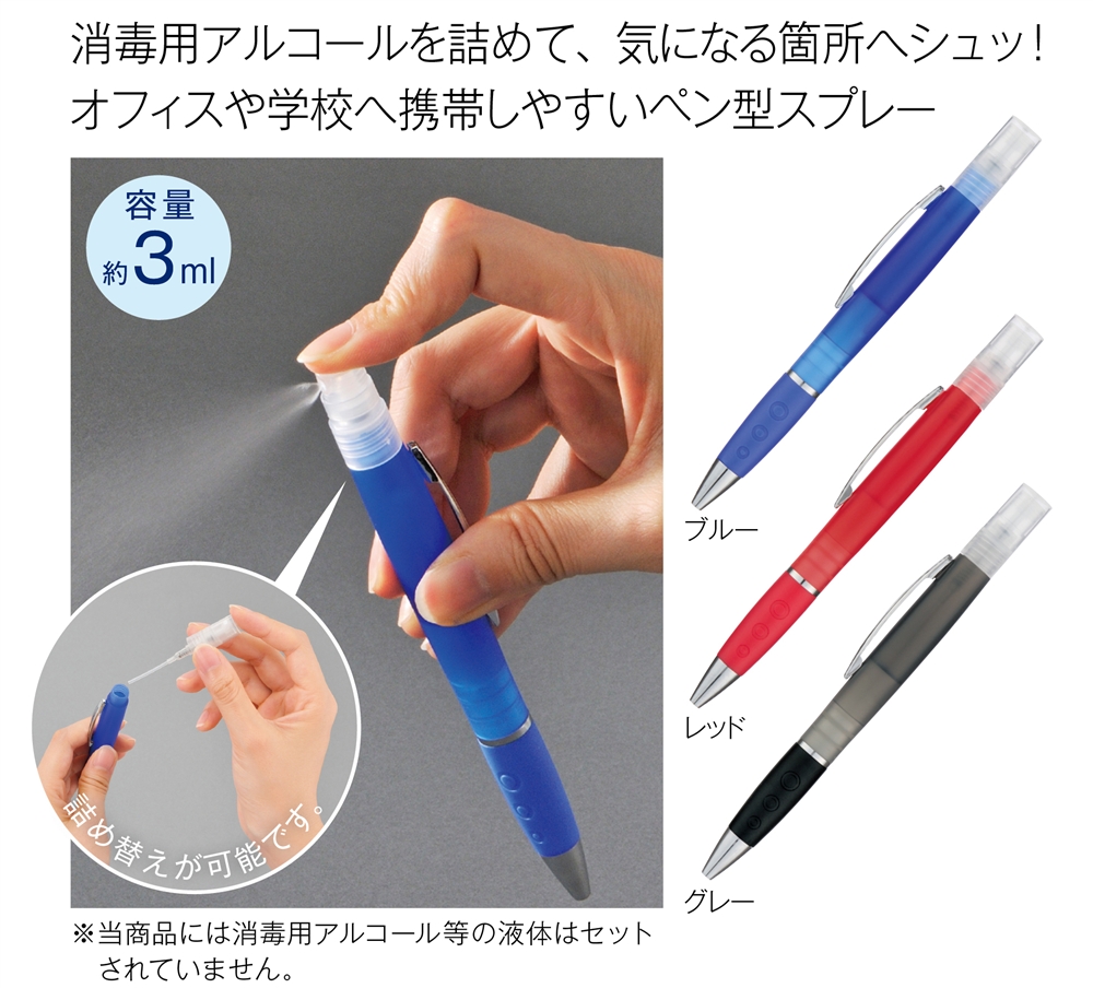 消毒用アルコールを入れられるスプレータイプのボールペンです。