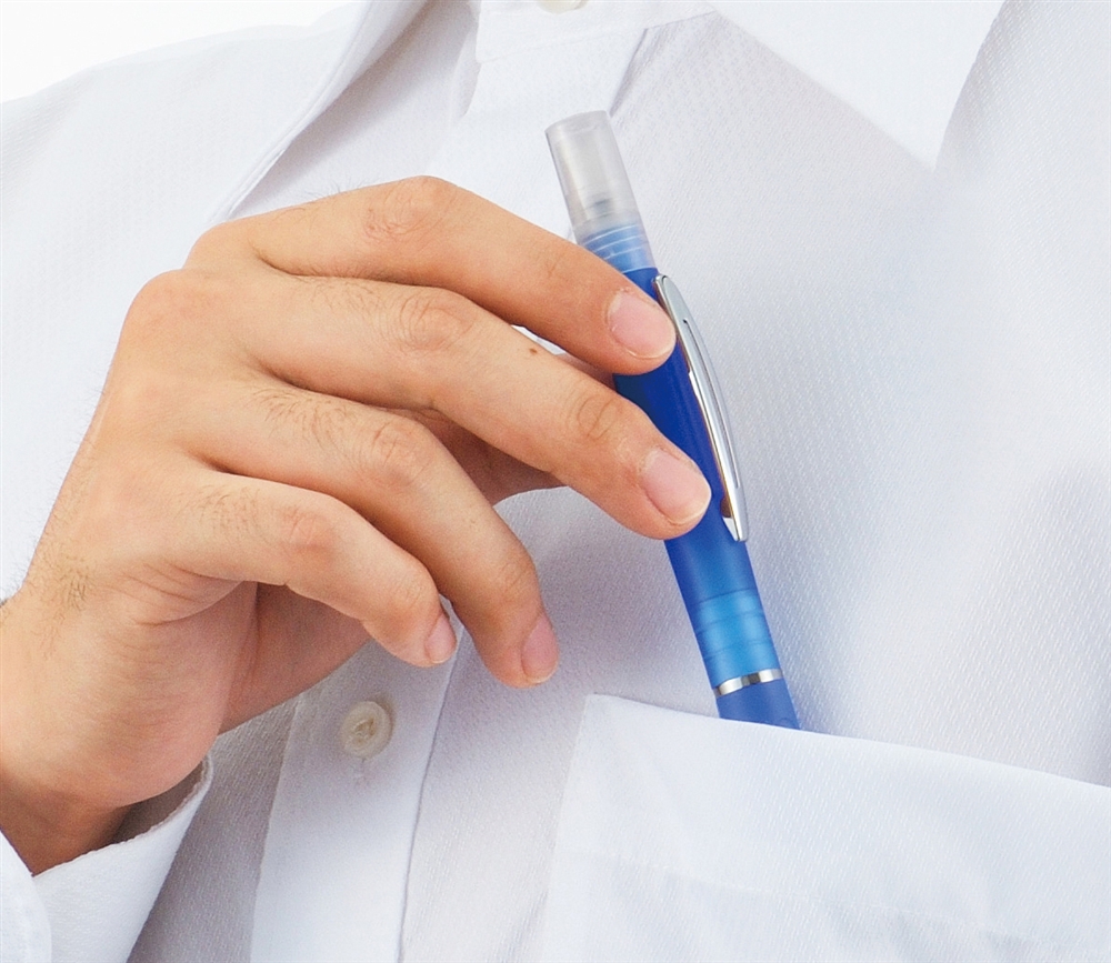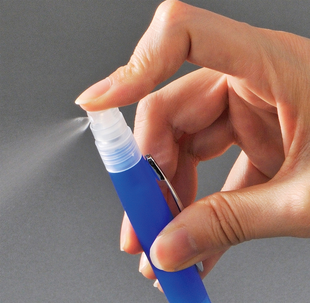 消毒用アルコールを詰めて、気になるところにシュッ!とスプレー。ボールペンとしても使えるので、オフィスや学校へ携帯しやすい商品です。中身が無くなったら詰め替えが可能です。実用的な衛生対策グッズは様々な方に喜ばれます。