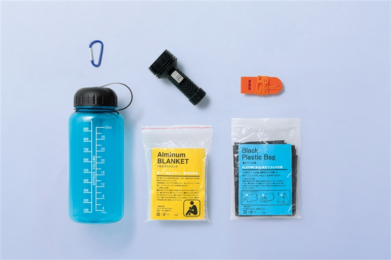 | 備考 | <セット内容> ウォーターボトル×1・カラビナキーホルダー×1・アルミブランケット×1・ホイッスル×1・LEDハンディライト×1・黒ビニール袋×1 単3形乾電池1本使用(別売) |