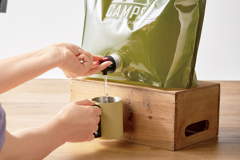 本体を傾けずに給水できアウトドアに最適。
