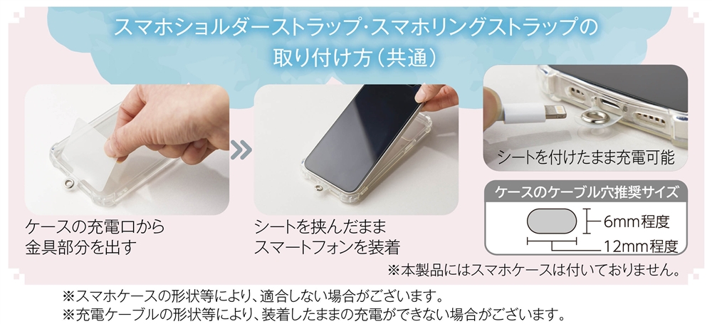 スマホの本体とカバーの間にシートを挟み、ケーブル穴から凸部分を出してセットします。お渡ししやすい軽さとサイズも魅力的!